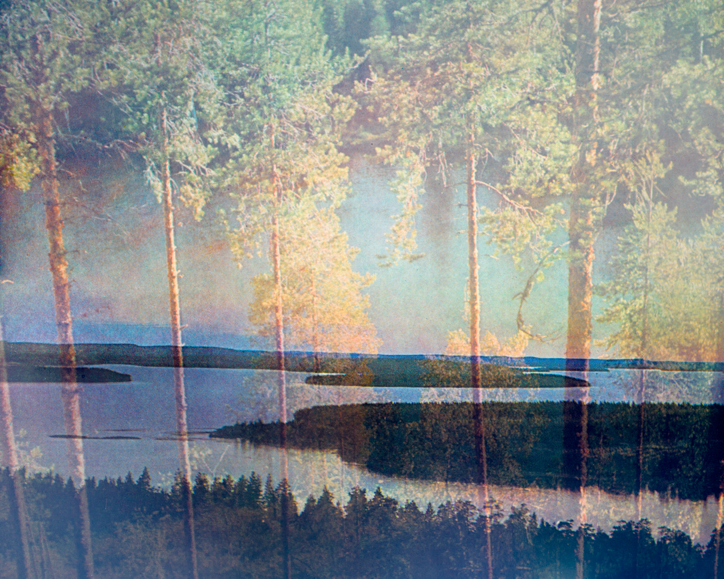 These photographs address the way place is interpreted through the printed image. The source images from a set of books I found titled Kaunis Suomi or “Beautiful Finland” while an Artist in Residence at Arteles Creative Center. The pages have been lit from behind by being taped to the studio window to reveal both sides of a printed page. They are made in camera with minimal post-processing.